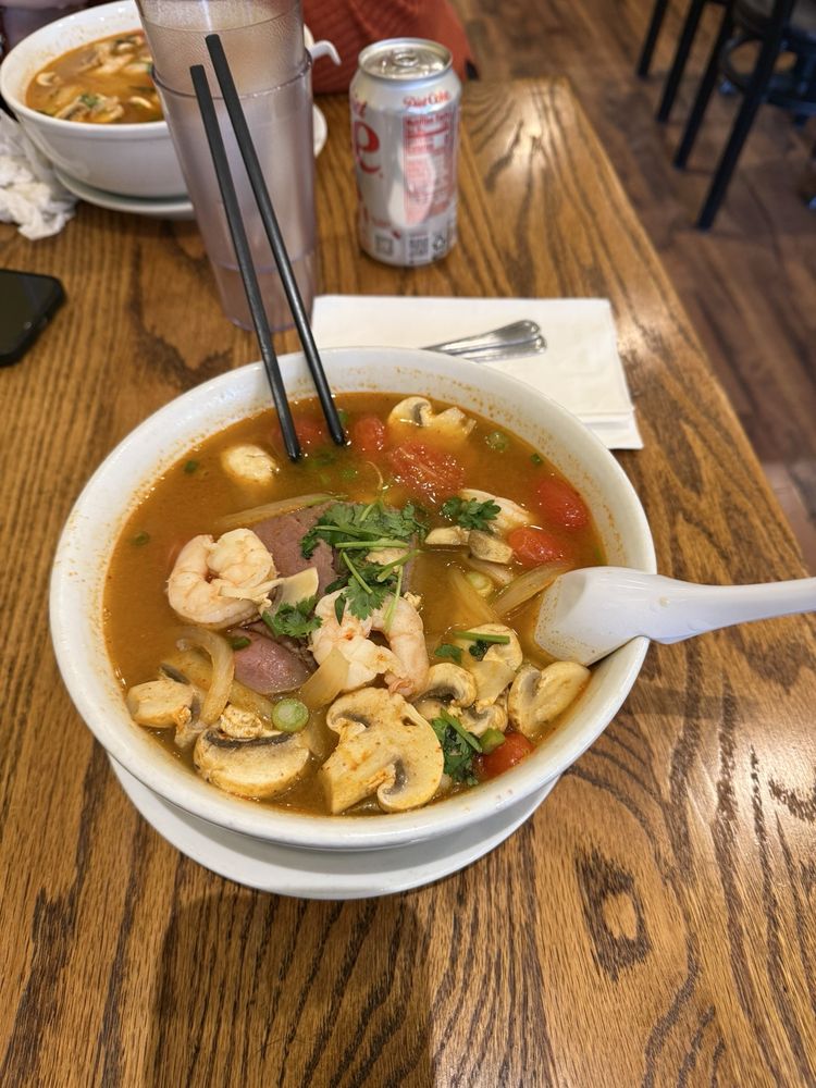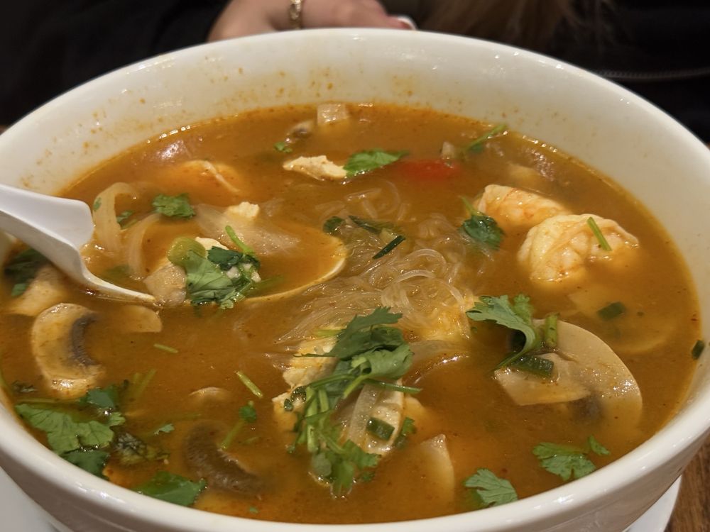 Welcome to Crazy Noodles, the delightful haven for Thai noodle soup lovers located at 36 Main St, Amherst. This cozy restaurant boasts a casual atmosphere that's perfect for groups, families, or a quick lunch. What truly stands out is their Pnom Pen Noodle Soup, a substantial dish bursting with flavors and heartiness, featuring pork, shrimp, and fish balls. Diners rave about its resemblance to traditional Pho but with a unique twist.